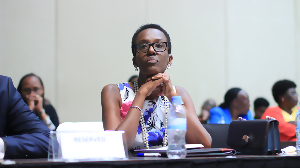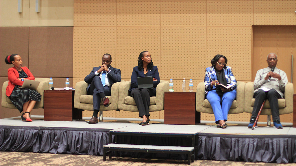 Panelist from the left to the right ( Me Baingana Magie, President of Rwanda Bar Association Me Nkundabarashi Moise, Me Kabasinga Floride, Me Gasarabwe Claudine, A.B Me Karangwa Vincent)